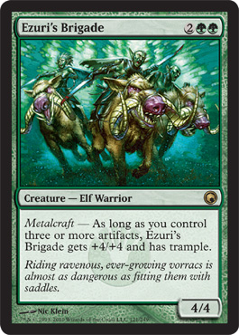 There’s something interesting thing going on with the color Green. This color has always hated artifacts (Yes, even early in Magic history). But, with the first few cards released for Scars of Mirrodin, you can see something really weird: