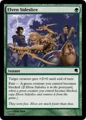 Fate — Exile Elven Sideslice from your graveyard: Put a copy of Elven Sideslice onto the stack. Play this ability only if a green creature you control became blocked this turn.