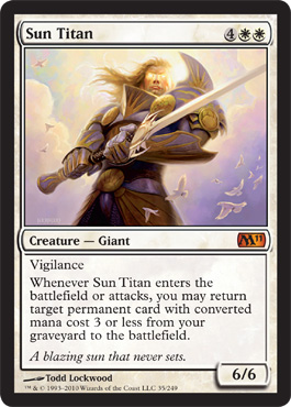 M11 was 229 non-basic land cards, each one of them different. When I mention “Titan” you easily picture 5 of them. That number of “almost” unique cards shrinks to 225 you have to memorize. Sure, each one of the colors have different abilities, but the templating for the Titan recall in your mind has been set. If I say, “With the Green Titan on the battlefield,” your brain will recolonize the template from the cycle and recall the particular details of it much quicker. Even if you don’t know what sets each of them apart, it’s much easier to try and figure it out.