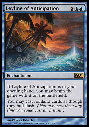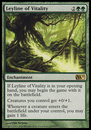 All have the word Leyline in it (not necessary for a cycle, but it does help if there’s a common name), all cost 2CC, all are Enchantments and all have an opening hand clause. The abilities of each enchantment is what makes them different and it works.