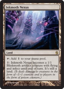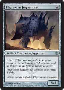 Inferno Titan + Grafted Exoskeleton (an indestructible 2/2 with infect and trample doesn’t seem so bad, and I’ve already given you plenty of poison counters since I’ve had this combo for several turns now)