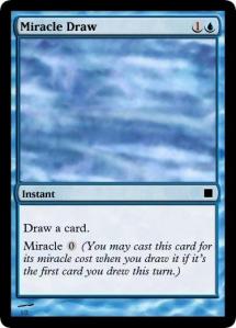 What we get with Miracle is the chance to play something cheaper, if we’re willing to spend mana on it right away and it’s the first card you draw a turn. This leads to some hijinxs with drawing on an opponent’s turn (which is why players are afraid of Temporal Mastery since you can cast Miracles anytime it’s the first card you drew in a turn). With Miracle you can get a huge effect for a much cheaper cost because you’re getting the reward of topdecking it. It must play awesomely because I know that feeling of getting what you need when you need it and that’s what this mechanic is all about.