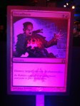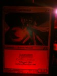 The cards were littered in their respective guild areas. If you take a look at my pics, you notice that some of them aren’t taken with the best quality. The display of the cards look much better in the club than on a computer screen, or a camera. They shine colored lights on them (which correspond to the guild) to give it a cool effect. It makes it kind of hard to read when you’re on the internet trying to get information about the spoilers; there was much discussion about Dreadbore being Rare or Uncommon. How I wish I could take one of the cards home; it didn’t happen this time.