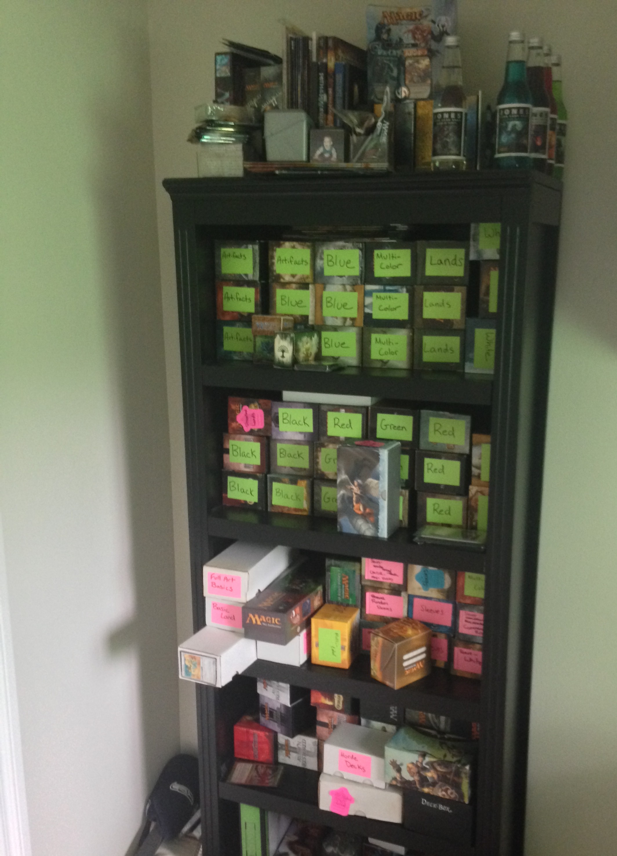 Last month, Mike Linnemann published an article on GatheringMagic where he showcased how players store their Magic collection. Mine was featured (thanks Mike), even though I just showed him my storage bookcase of my cards and not the entire room. I’ve wanted to do this post for a while, and because of certain events it’s either now or never. We’re going to peak behind the curtain and I want to show off just a little bit.